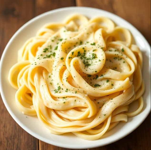 Perfectly cooked ribbons of fettuccine pasta are delicately tossed in a rich, velvety sauce made from fresh cream, premium butter, and aged Parmigiano-Reggiano cheese.
